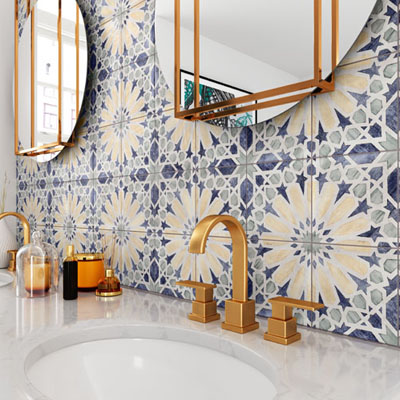 シルキーな面状で優しい色合いの150角スペイン製タイル。